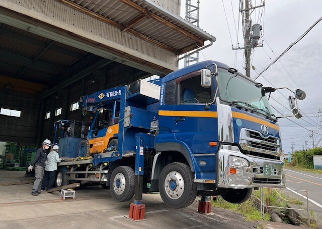 クレーンを搭載したトラックで、作業エリアが狭い場所や、天井高が低い工場内でも使用できます。