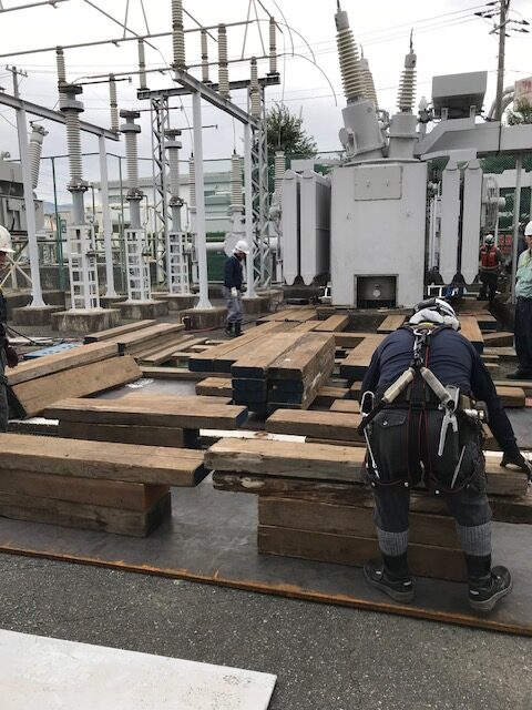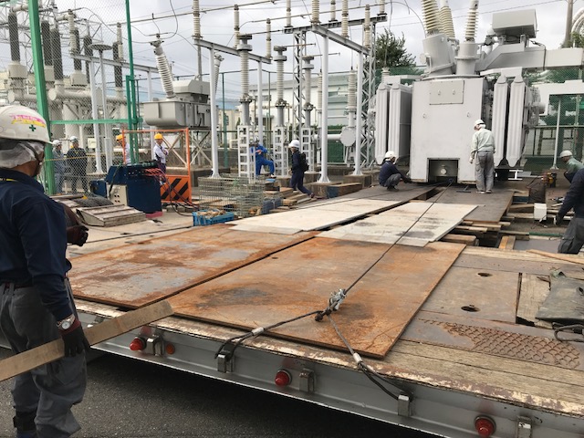 製品の搬出ルートに鉄板を敷くための段取りをするよ!